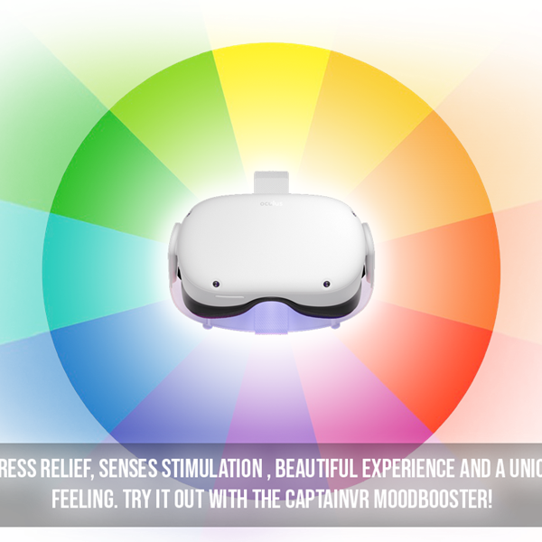 One of the VR tools that CaptainVR has developed to reduce stress is the VR MoodBooster. The VR MoodBooster helps people relax and influence mood and behavior by stimulating the senses. This literally gives you a boost in your mood and behavior.